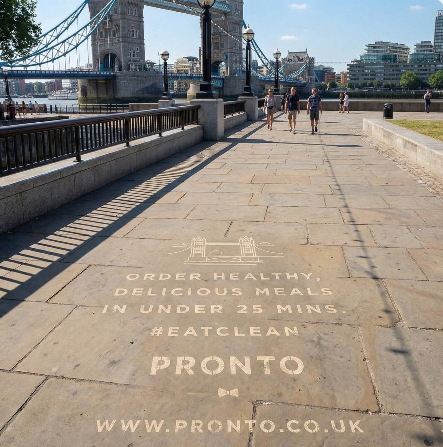 Naturally Temporary Depending on the footfall and weather, clean adverts naturally fade away over time as the pavement weathers, meaning zero cleanup costs and full compliance with local environmental ethos.